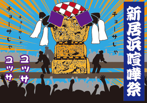 新居浜の「太鼓祭り」は「喧嘩祭」といわれます。京都祇園祭の「山車」を起源とするこの祭りでは、豪華な立体刺繍で彩られた太鼓台が主役です。重さが二トン以上もあり、百人以上のかき夫と呼ばれる男たちに担がれる巨大な太鼓台は、新居浜の各地区に四十八台があり、それぞれの地区において勇壮なかきくらべが披露されるのです。