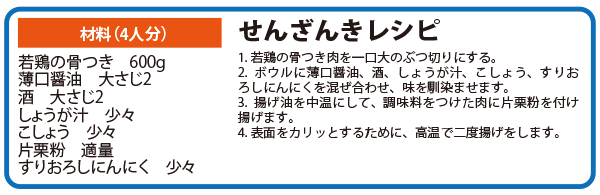 大分県は鶏の消費量が日本一。その中でも、宇佐市と中津市は、人口か少ないにもかかわらず、多くの唐揚げ専門店がひしめき合う「からあげ激戦区」となっています。味付けは少し甘めですが、消費量日本一らしく、多くの人人が皮揚げを買い求めます。