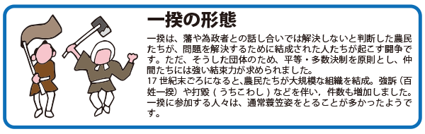 しかし一揆を起こせば首謀者は死罪となるのがたてまえでしたから、これは生か死かの極限に追いつめられた場合の、最後の反抗と見るべきものです。