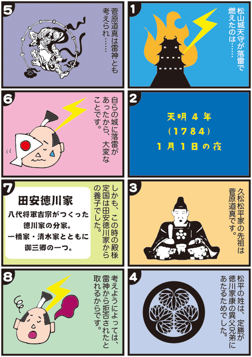 10代藩主・定国の代に焼失した松山城天守は、天明4年(1784)6月29日に幕府に願い出て復興の許しを得ましたが、藩の財政難により着手できませんでした。